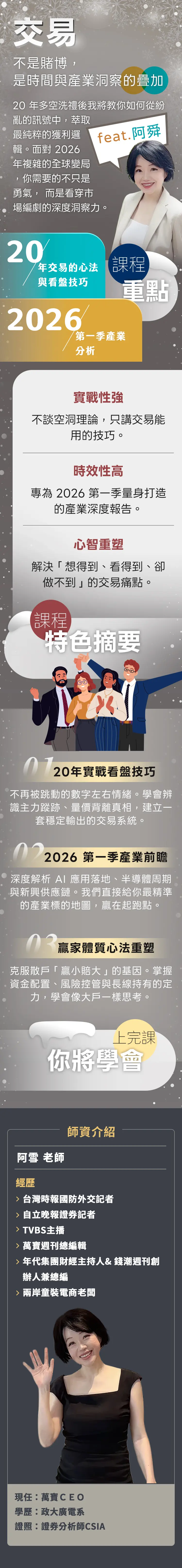 在歷經企業經營與人生轉折後,他帶著更沉穩的視角回歸股市。以財報數據為基石,結合產業趨勢的前瞻性,致力於發掘具備波段潛力的績優公司,協助投資人在變動的市場中精準佈局。